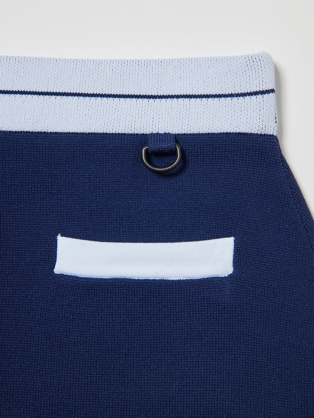サマーニット生地でありながら体型を拾いにくくちょうどよい厚さのある生地。後ろに2つポケット有り。トップスとセットアップで着用するとウエストロゴが見えて可愛いアイテム。