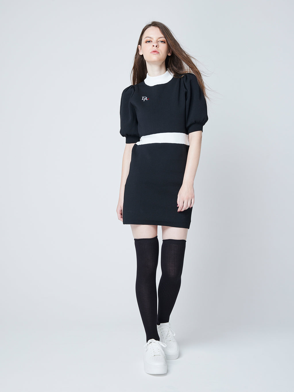 上半身は若干のゆとりをもたし、スカート部分はハイウエストな切り返し。タイトな作りで美しいシルエットを演出します。肉厚な生地で、伸縮性もあり着心地がいいアイテムです。カラーは、ブラック、ホワイトの2色展開です。