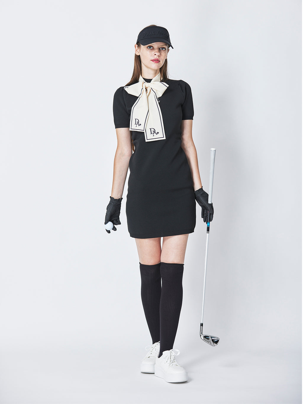 しゃり感がある珍しい生地感のスカーフ付きのワンピース。