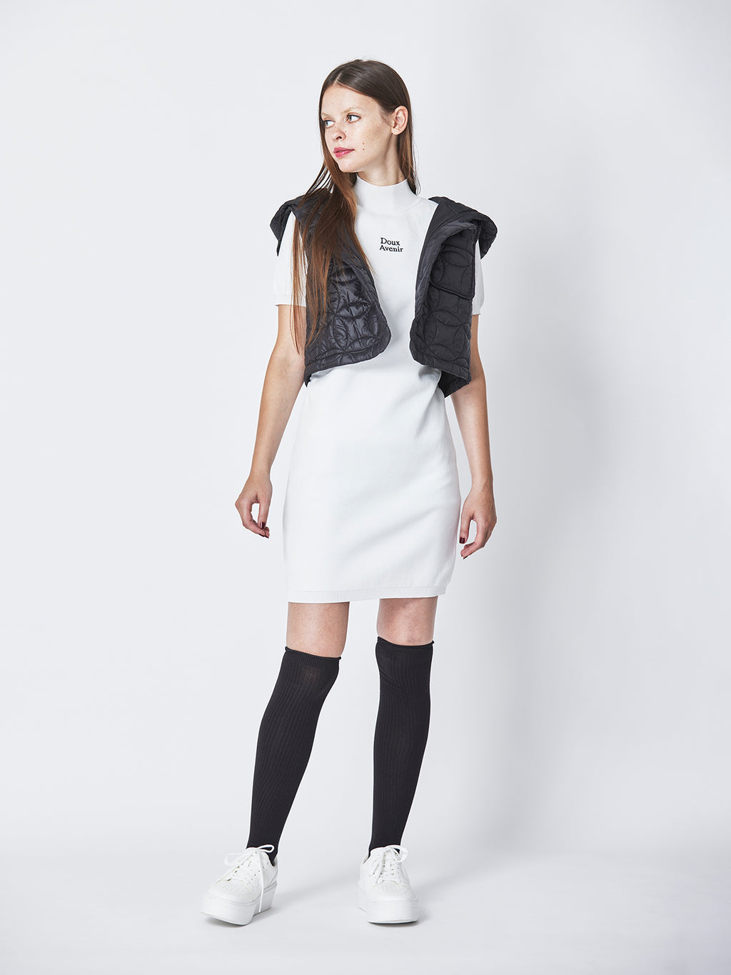 腰にギャザーを入れ美しいフォルムに仕上がっています。 DouxAvenir定番のワンピースに秋冬らしいアクセントが加わりました。