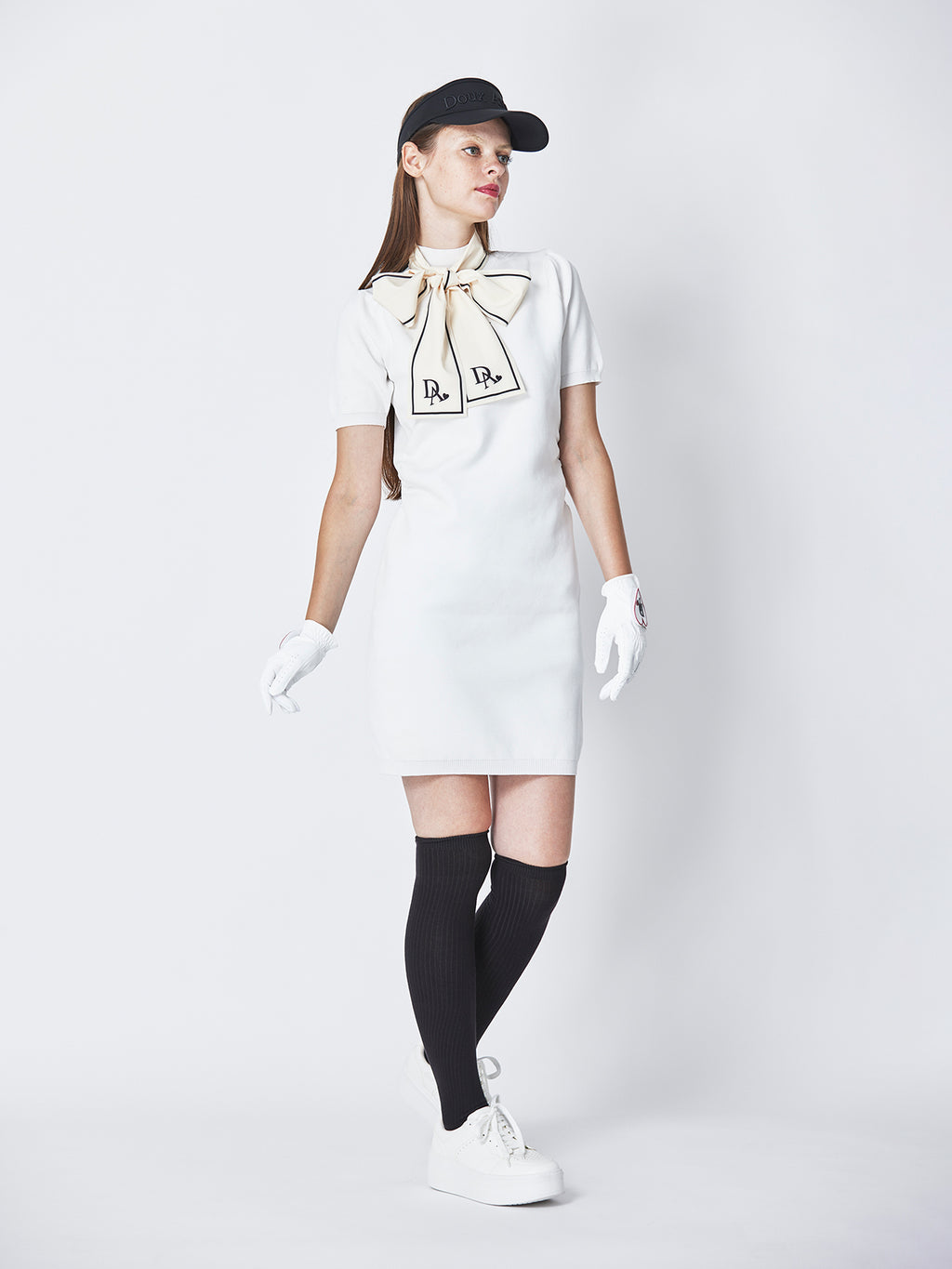 しゃり感がある珍しい生地感のスカーフ付きのワンピース。