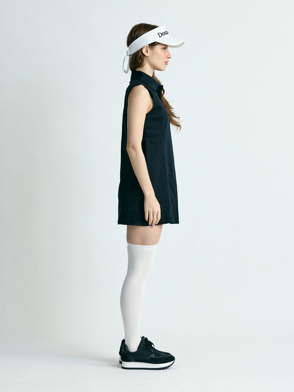 襟が丸襟で可愛らしく、きちんと感も出せるポロシャツワンピース。