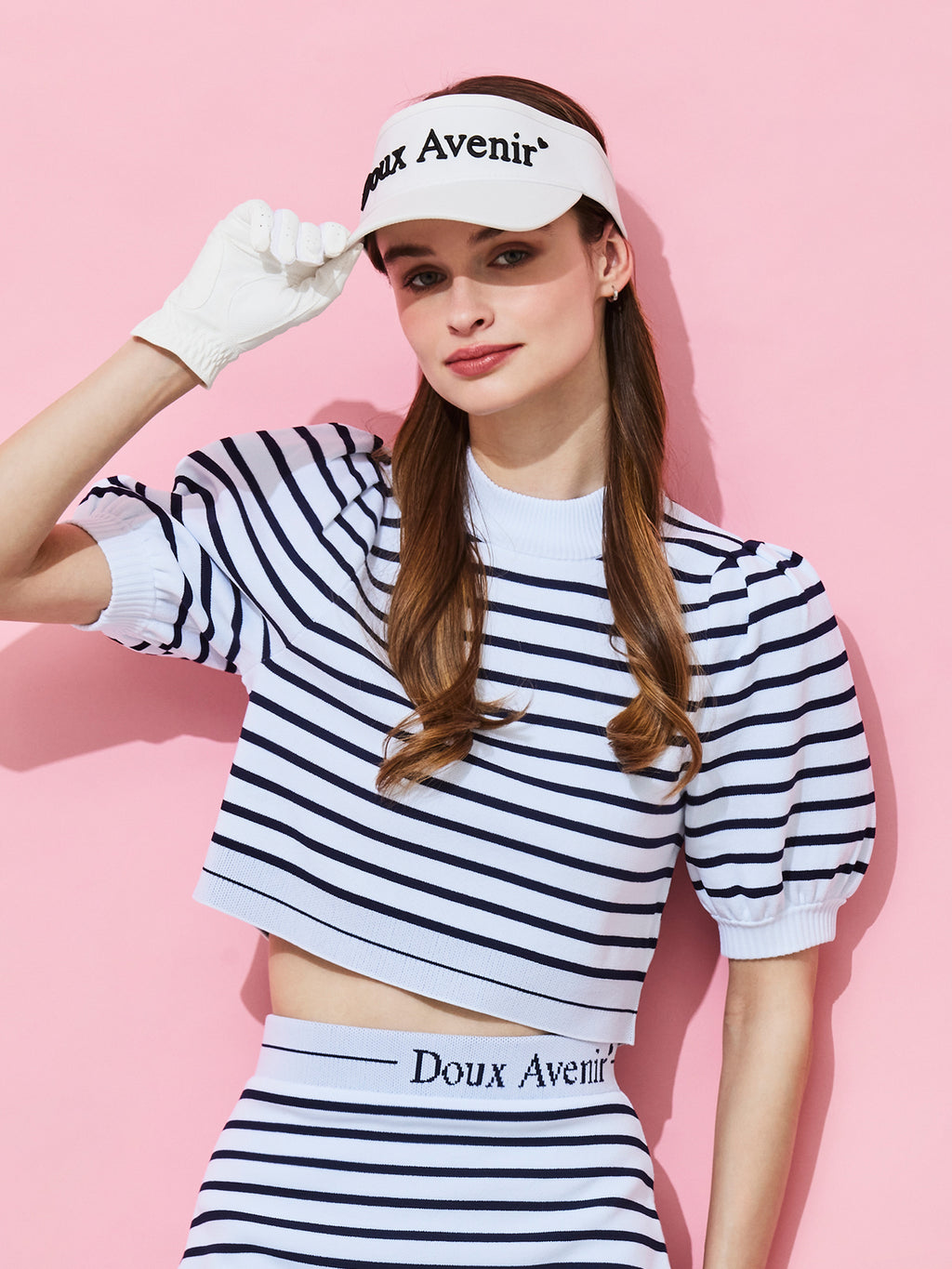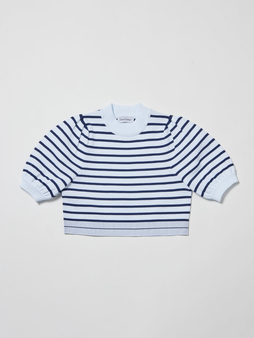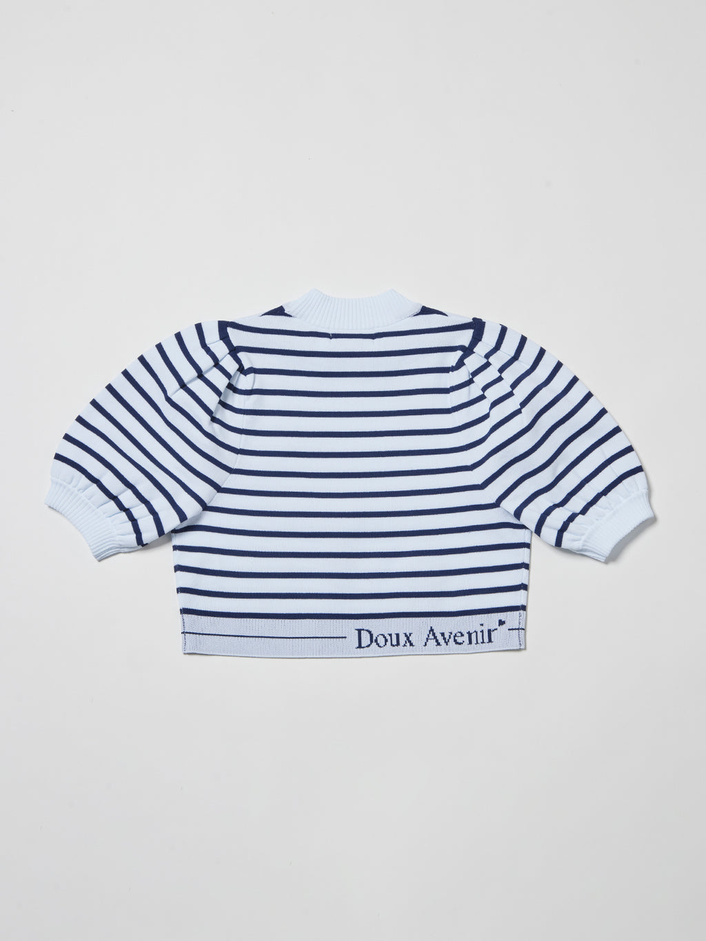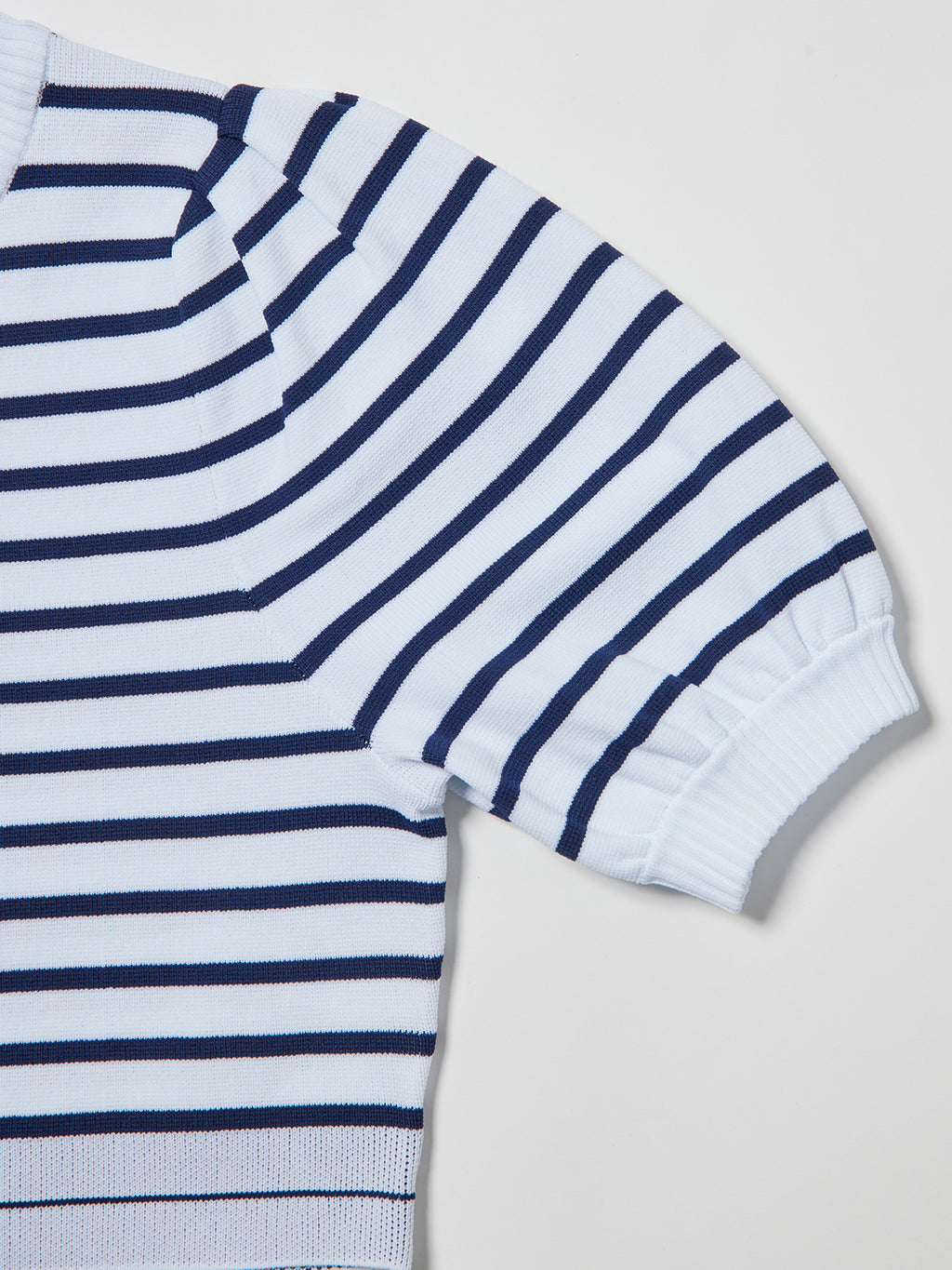 袖は半袖パフスリーブ、クロップド丈で春夏らしい抜け感のデザイン。