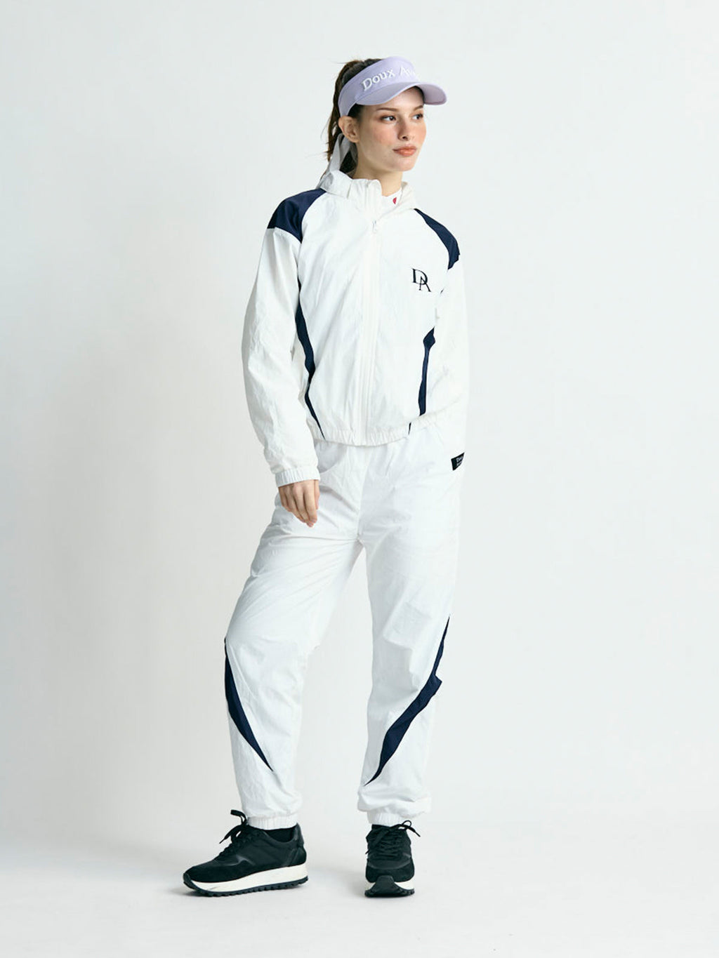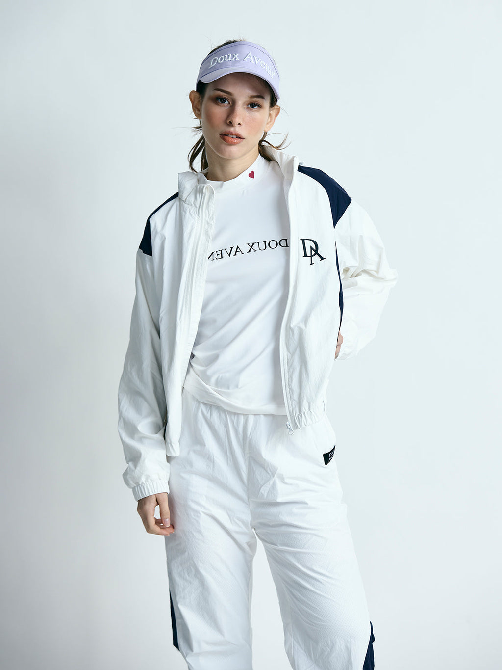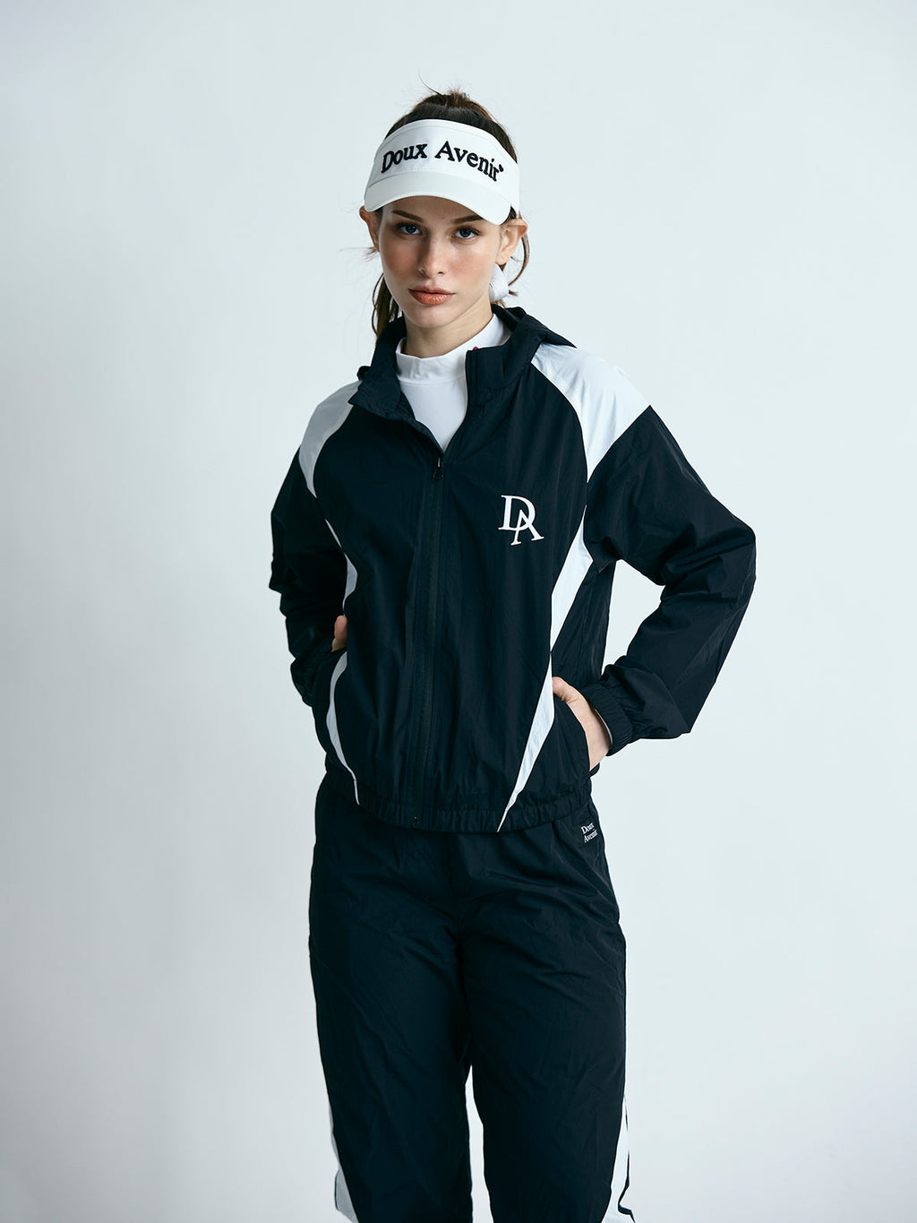 フィット感とメッシュの裏地で重ね着に最適。撥水機能有り。